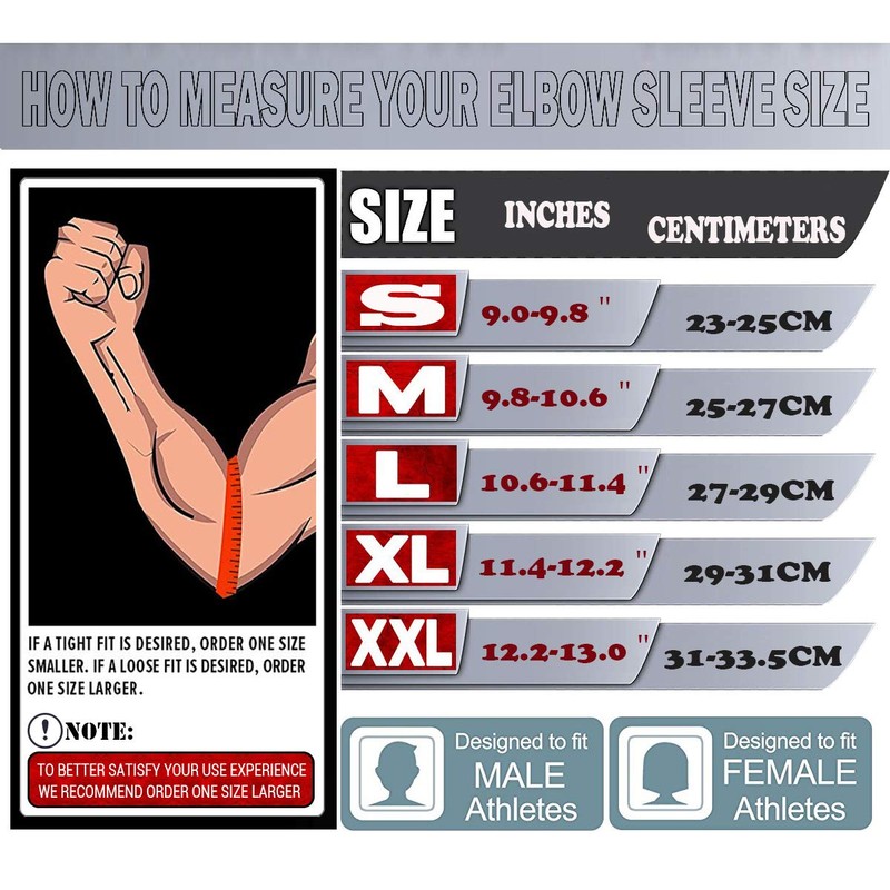 - 💪EXTRA LENGTH, COMPLETE COVERAGE - Every size sleeve comes in full length for maximum coverage and support. Our elbow sleeves are designed to add warmth and compression through the elbow joint and surrounding muscles. NOTE: Due to the length and strength of materials used, tight sleeves may be very difficult to apply.