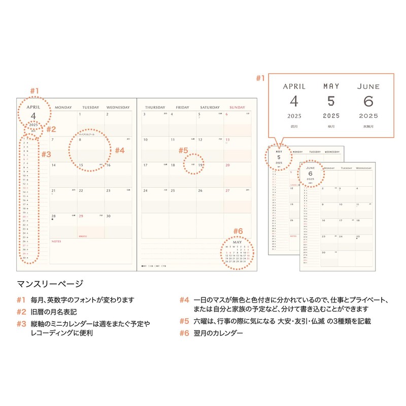 Elcomune Matka DR-MG-519 Notebook, Begins April 2025, B6, Monthly Papyrus, Sand Yellow