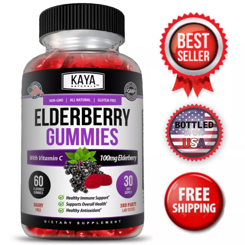 Elderberry Gummies 60ct Zinc Vitamin C Immune Support Black Sambucus