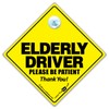 Elderly Driver Please Be Patient Car Sign, Suction Cup Car Sign For Elderly Drivers, Baby On Board Sign Style Advisory Sign For Old Drivers in Super Bright Yellow and Black 14cm x 14cm x 2cm