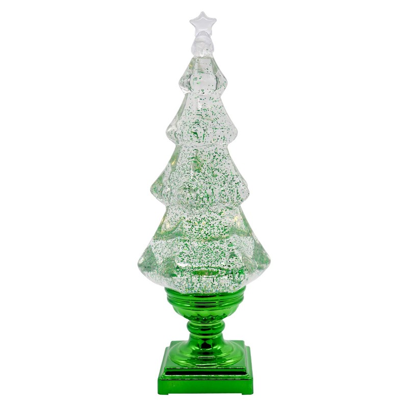 Eldnacele Musical 14" Light-up Christmas Tree Snow Globe Water Glittering Tree Clear Acrylic with USB Line and 6 Hours Timer for Home Decoration