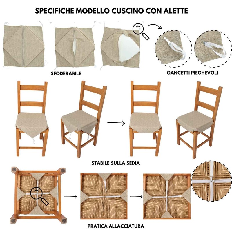 - Version with elasticated 4 Alloy with simplicity with flaps that under the chair will always remain clean and stopper.