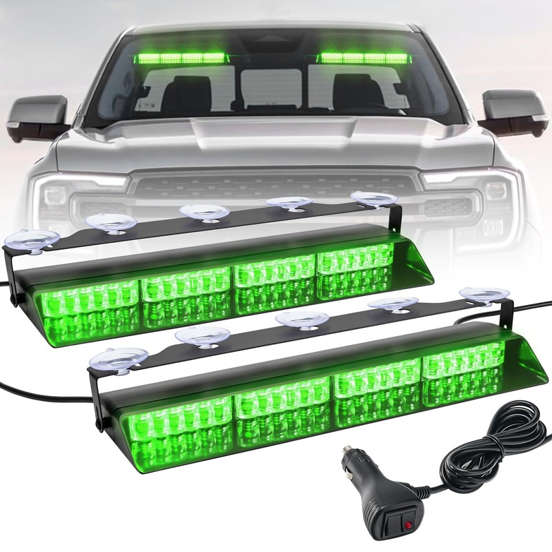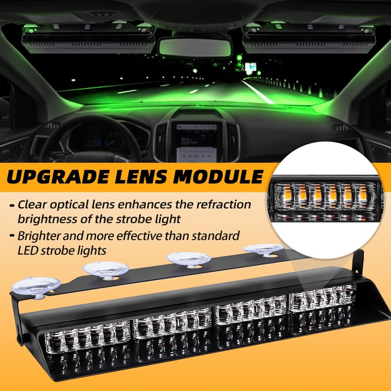 ELECHOI Green 2 in 1 Emergency Dash Strobe Light Bar, Front/Rear 48LEDs Interior Windshield Visor Safety Flashing Warning Hazard Lights for Trucks Vehicles