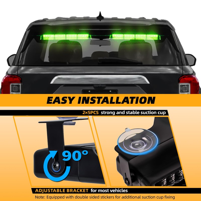 - EASY INSTALLATION - Each emergency dash light bar has 5 strong and stable suction cup brackets are firmly installed on the smooth front /rear windshield to prevent the warning light from falling off during driving. Equipped with double sided stickers for additional suction cup fixing