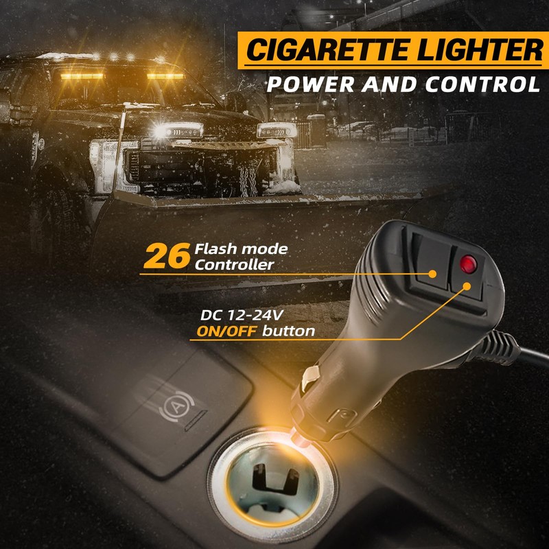 - 26 STROBE MODE SELECTION - Our emergency strobe light feature a classic double switch with 26 strobe modes to choose from. The strobe mode can be easily switched on and off via the cigarette lighter plug. Last used pattern recall or memory function. 13.5ft heavy-duty cable and plug and play, The length is long enough to install the light on the front/rear windshield of the vehicle