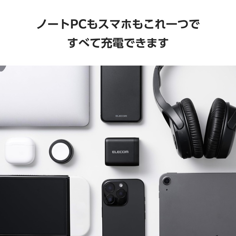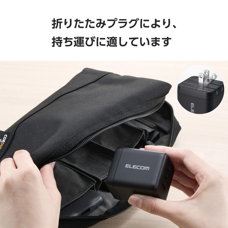 - Uses GaN II (Galium Nitride) for a compact size while maintaining high output. The plug part can also be folded, so it does not take up much space in the bag, making it convenient for business outings, remote work, business trips, travel, etc