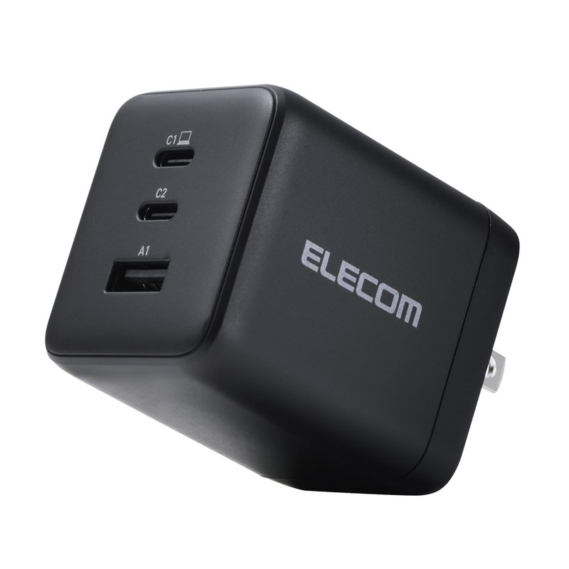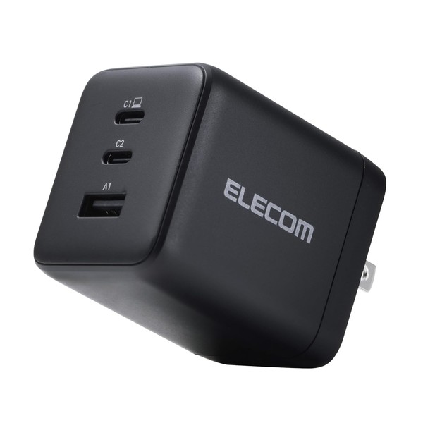 Elecom ACDC-PD104100BK Charger, 100 W, 3 Ports, USB-C x 2, USB-A x 1, USB PD Compatible, Uses Swing Plug, Black