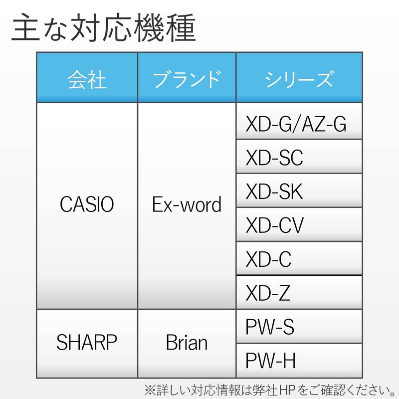 Electronic dictionary can be securely fastened to the case. The included adhesive sheet securely fastens the electronic dictionary to the case to prevent it from falling. The sheet can be reapplied repeatedly without soiling the electronic dictionary. |