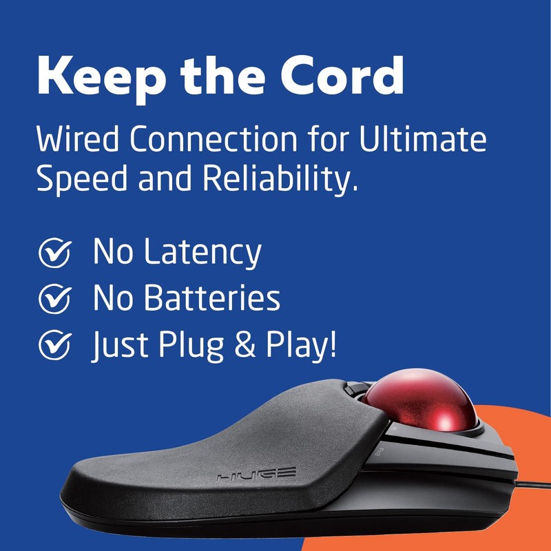ELECOM HUGE Trackball Mouse, Wired, Finger-Operated, 8-Button Function, Palm Rest Attached, 52mm Smooth Red Ball Windows11, macOS (M-HT1URBK)
