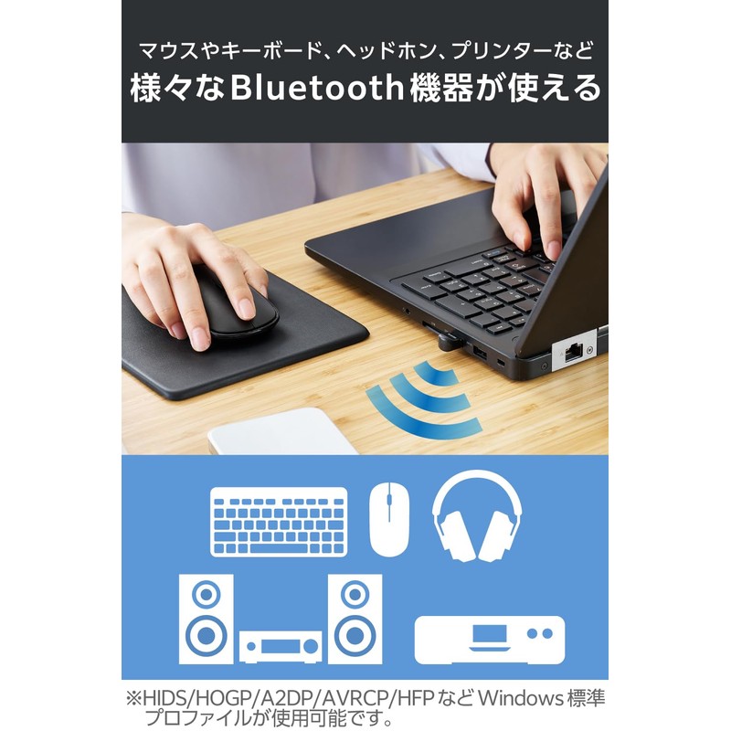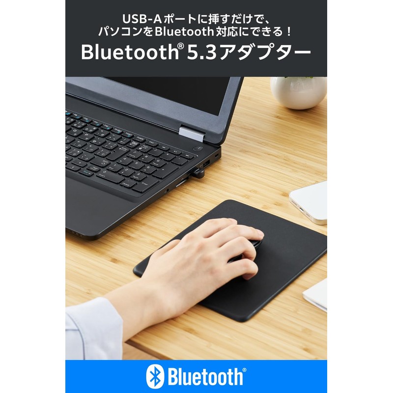 • Simply plug it into a USB-A port and your computer is Bluetooth(R) compatible. Bluetooth Ver. 5.3 USB Adapter
