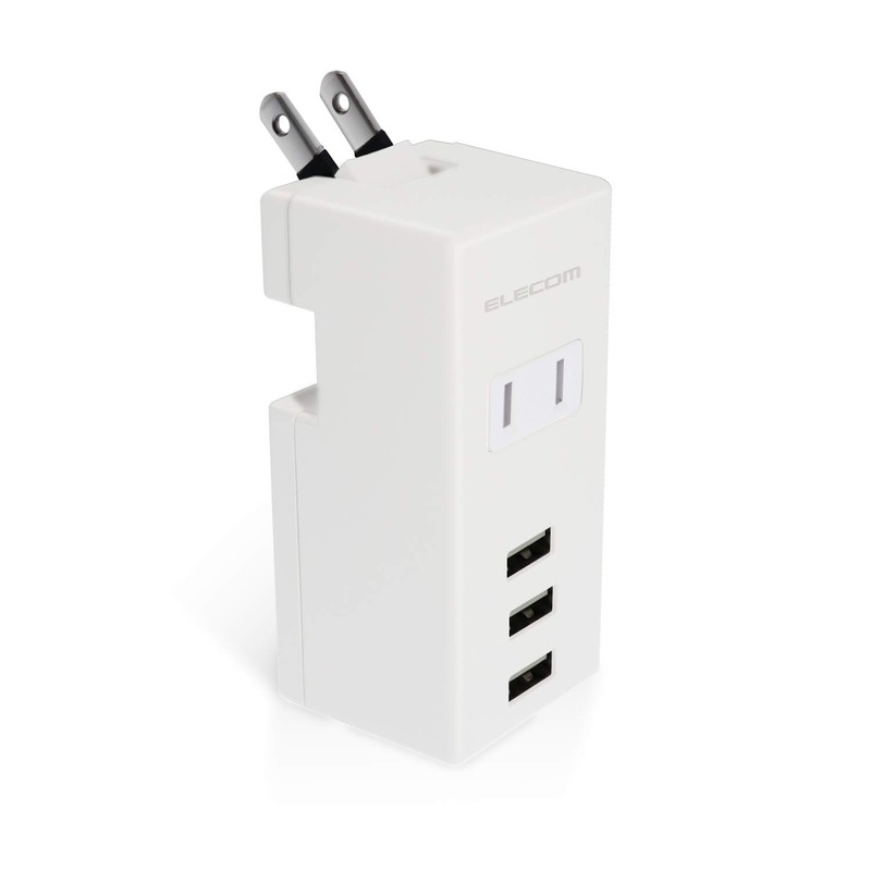 Elecom USB Tap, USB Female x 3, AC x 1, Vertical Insert, 2.1A, White