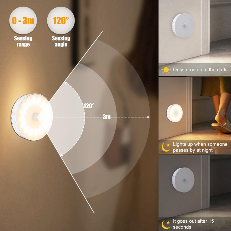 - Wide Range of Applications: The motion sensor light illuminates a wide range of light and is super bright, ideal for indoor use, such as stairs, bedrooms, corridors, children's rooms, basements, cabinets, closets, drawers, bookshelves, etc. They are a must-have for your home, ideal for you