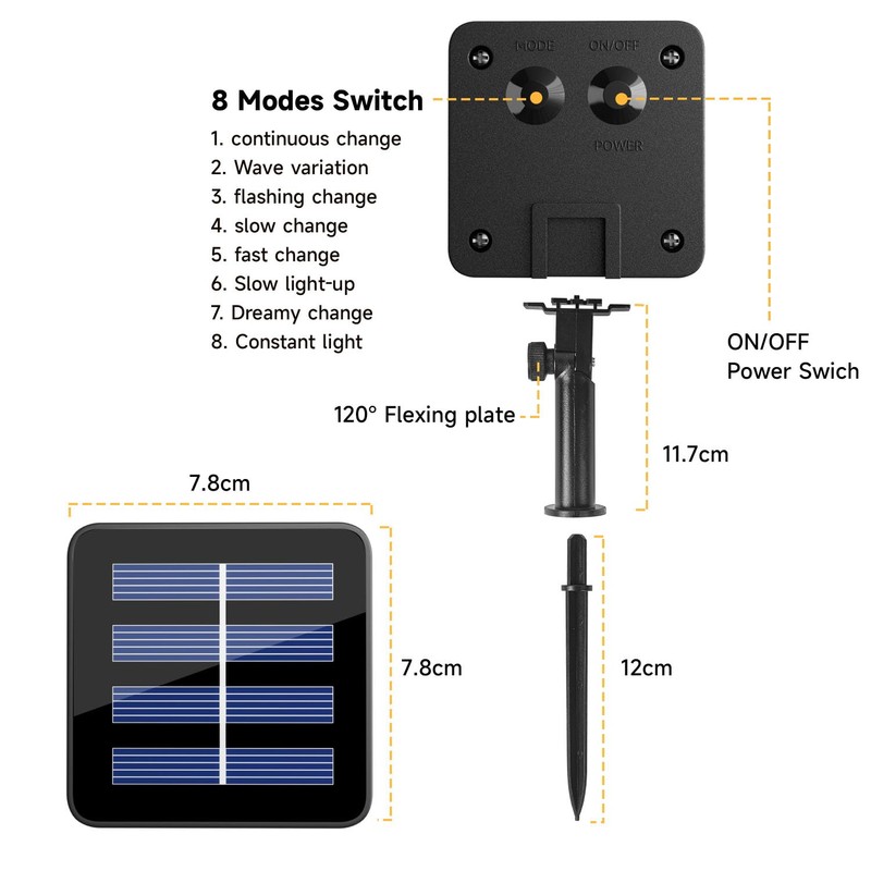 • 8 Lighting Modes: Outdoor light string can be selected 8 different modes to meet your various needs. Gorgeous light modes include combination, wave, dual light chase, single light slow fade, chase/flash, dual light slow fade, flashing and constant light. You can switch to your favourite mode according to different holiday atmosphere and overall moods such as Halloween, Christmas, etc. to enrich your experience