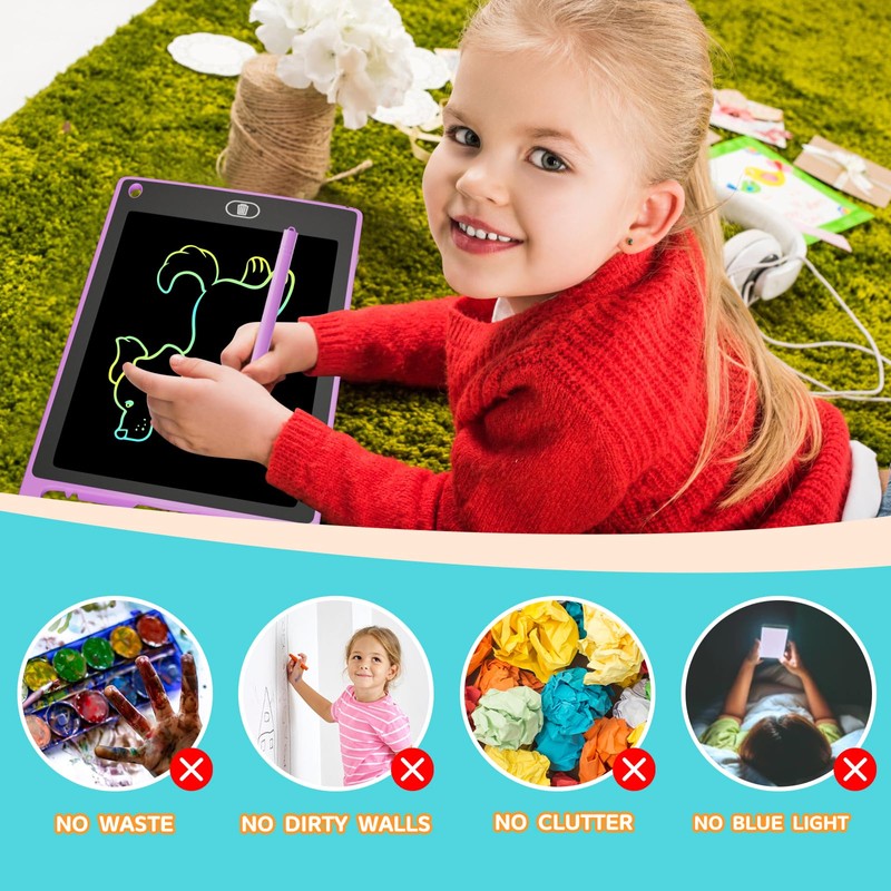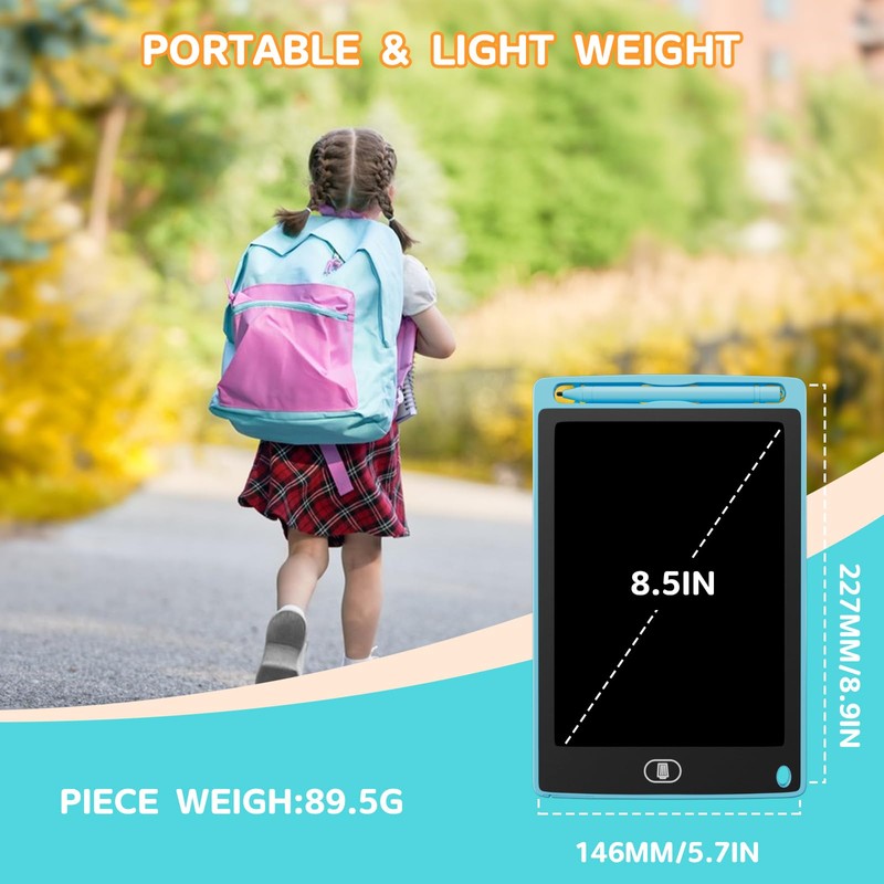- 3 Packs 8.5 Inch Kids Writing Tablet: Using the latest flexible LCD technology, it is brighter and clearer than most LCD writing boards. With pressure sensitive technology, you can draw different thickness of lines by different pressure levels. Colourful drawing board design, different areas will show different colours, making doodles more vivid and imaginative, unleashing the creator's imagination and creativity