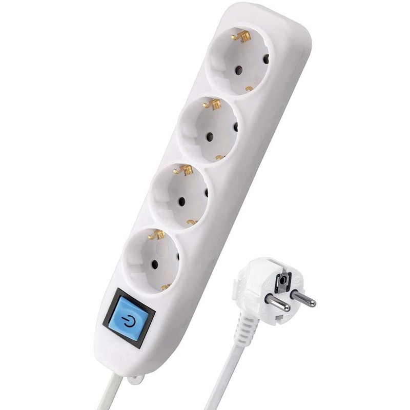 Electraline 59661, 4-Way Power Strip with Switch, Cable 1.5 m / Multiple Socket / Table Socket Power Strip, Female