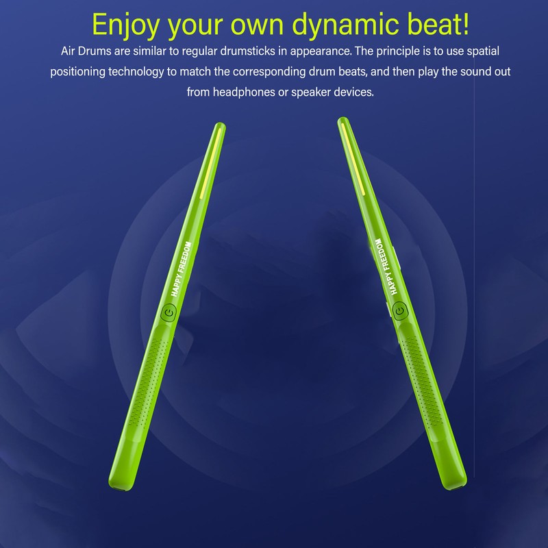 1、3D Motion Sensing: Our air drum kit uses advanced 3D motion sensing technology to accurately recognize where the drumsticks are hitting. It plays matching drum sounds through a connected sound device, providing an immersive drumming experience. 2、Immersive Virtual Reality: With advanced virtual reality technology, our electronic drum set simulates the sound of each component, ensuring an incredible user experience. 3、Durable and Reliable: Made with premium electronic components and ABS material, our air drum set withstands the test of time, offering durability and long lasting performance. 4、Compact and Portable: Designed with portability in mind, our electronic drum set is compact and lightweight. Its pocket sized design allows you to play drums anytime, anywhere, making it perfect for outdoor use. 5、Versatile and Convenient: Whether at home, in the office, or in outdoor settings like gardens, our virtual drum set is suitable for various environments. Enjoy the thrill of drumming without the need for bulky equipment or excessive noise.