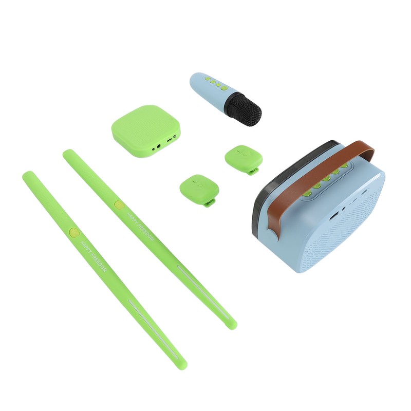 Electric Air Drum Set 3D Motion Sensing Virtual Drumsticks Somatosensory Drum Kit with Foot Pedals Speaker Microphone for Beginners Kids Adults Green