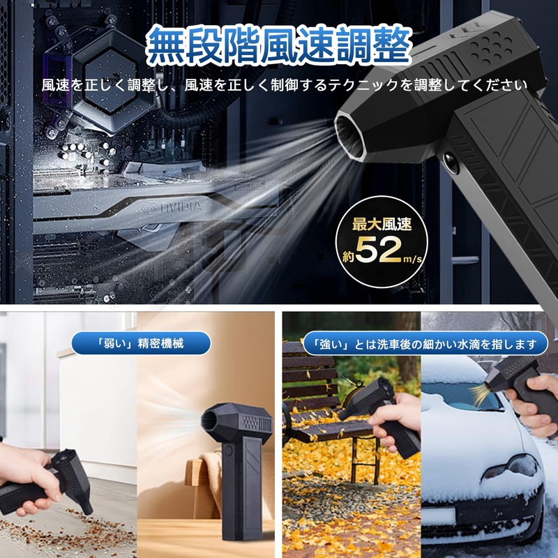 Electric Air Duster, Blower, Car Wash, Powerful Stepless Air Flow Adjustment (Overwhelming Injection Power, Max Wind Speed 52m/s), USB Rechargeable, 8,000 mAh, Electric Small, Lightweight, Cordless