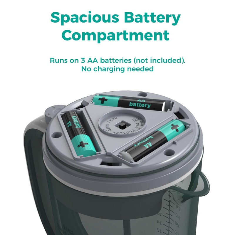 - Travel-Friendly & Battery-Powered: Runs on 3 AA batteries (not included), lasting up to 2 years (730 two-minute mixing sessions). Compact and lightweight—perfect for travel and busy parents on the go