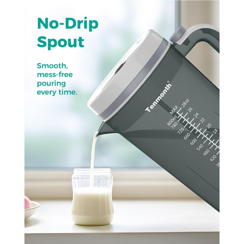 Electric Baby Formula Mixer Pitcher, Tenmonth Fast Baby Formula Maker with No Drip Spout & Locking Lid, Motorized 28oz Clump-Free Mixing, No Air Bubbles, BPA-Free & Portable for Travel