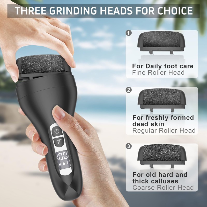 - 【Updated Wider and Larger Grinding Heads ,3 Replace Roller Heads】 ━ The electronic callus remover of upgraded grinding rollers removes dead skin in a wider and larger area, thus effectively removing the calluses, and cracked heel dead skin.In addition,our callous removers for feet has 3 different quartz sand grinding heads,You can choose suitable grinding head according to the skin to care,make your feet restore the delicate and smooth skin.
