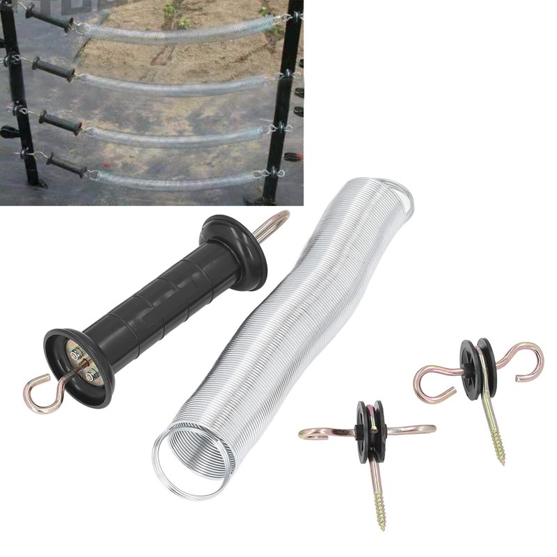 - 【Easy to Install】The spring of electric fence gate kit is ideal for gate breaks, simply connect one end to the gate handle and the other end to the post insulator.Attach the rope of the fence to the gate handle simply and safely, without any additional tools.