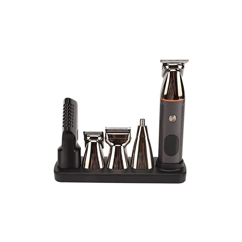 Electric Hair Clipper, Nose Hair Cutter Eyebrow Grooming Beard Trimming Set with 6 Guide Combs, R Shape Incisive Cutter, USB Rechargeable, Wet and Dry Use