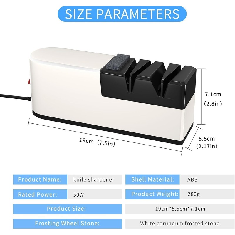 - ✅【Versatile Convenience】:Whether it's for home use, a street shop, or professional chefs in a bustling meat market, this Electric Knife Sharpener is versatile and adaptable. It can sharpen various knife types, including iron and steel blades, catering to a wide range of scenarios.