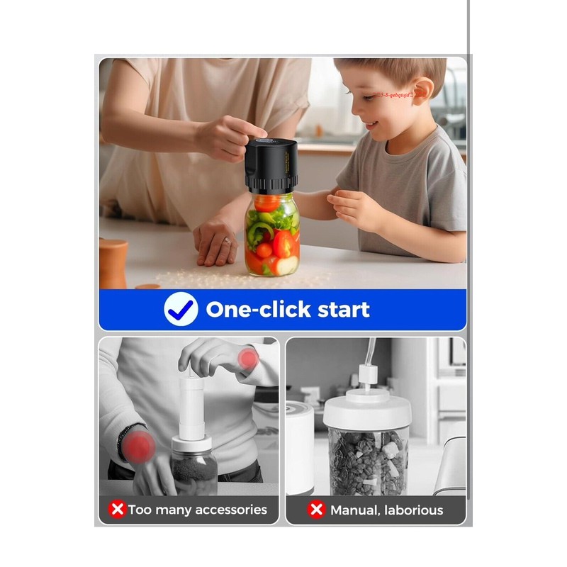 Easy to Use: Say goodbye to messy manual vacuum pumps and accessories.with the electric mason jar vacuum sealer kit, Simply center the sealer on top of the jar's lid, press the button for 20-40 seconds, and wait for the air to be evacuated. Click the button again to close the sealer.