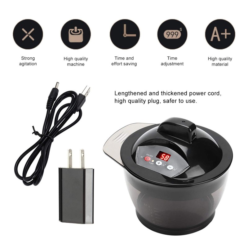 Stable performance, fast and even mixing, more time-saving than traditional manual mixing. Convenient and simple operation interface, you can set the automatic stirring time. Can better mix dye paste, make hair reach perfect saturation, help hairdressers to create delicate hairstyle. The mixing bowl has scales, which is convenient for mixing dye paste and observing dosage. Lengthened and thickened power cord, high quality plug, safer to use.