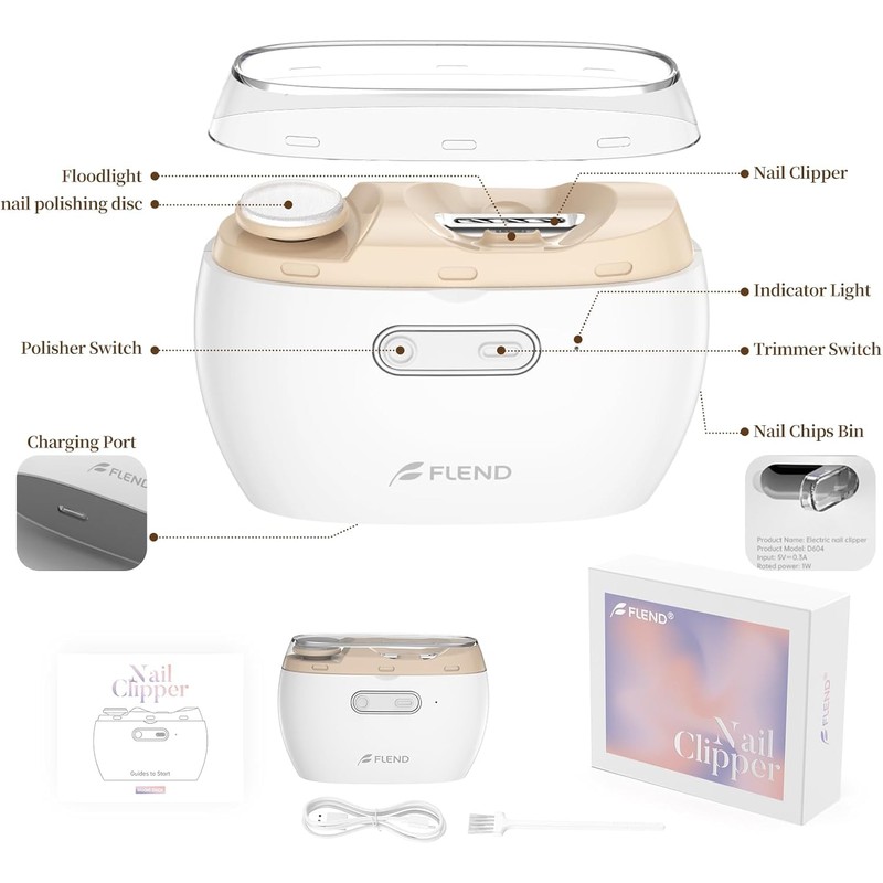 Package: 1x Nail clipper, 1x USB cable, 1x Cleaning Brush, 1x Manual