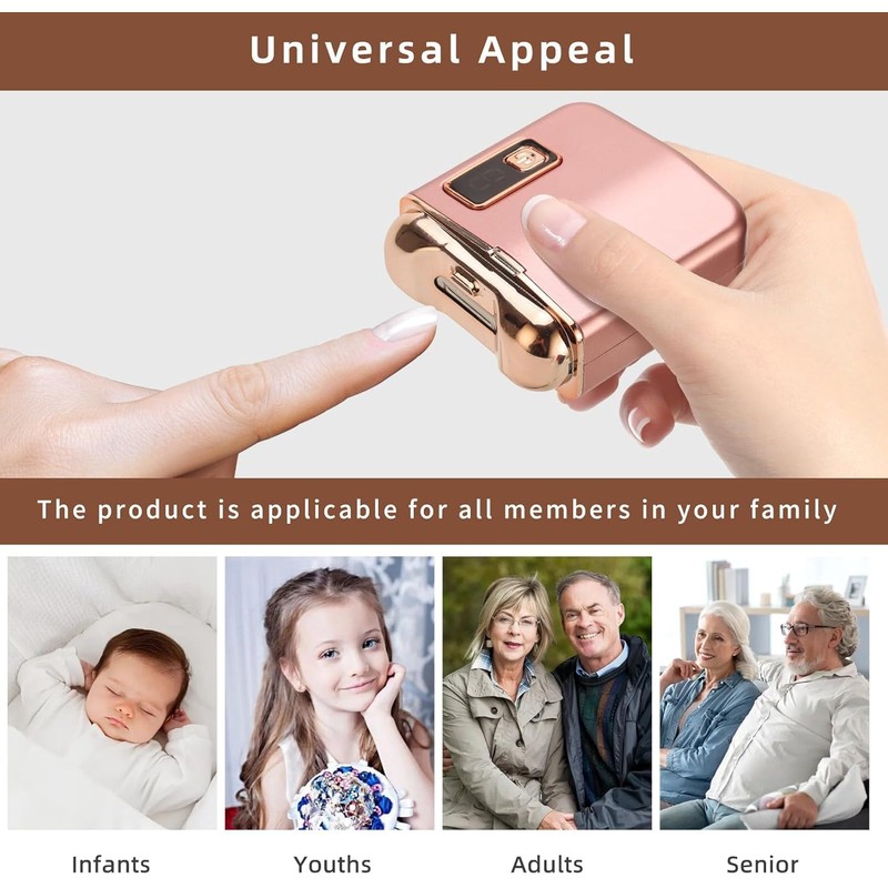 - Electric and Safe: This electric baby nail clipper is 100% safe. It features ergonomic design, providing a comfortable grip. The blade is concealed behind a slot that protects fingers. When your finger directly contacts the slot, the automatic nail trimmer is absolutely safe. With this nail clipper, you will never worry about accidentally cutting your baby's fingers. This nail clipper is also perfect for seniors with poor eyesight.