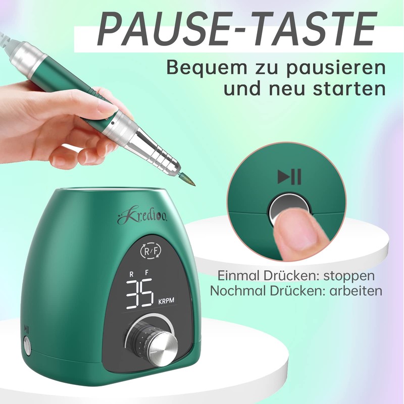 • Pause button and multifunctional: With a pause button, you only need to press once for the cutter to work or stop. With 6 bits and 25 sanding belts, different shapes are ideal for fine work or larger nail surfaces.