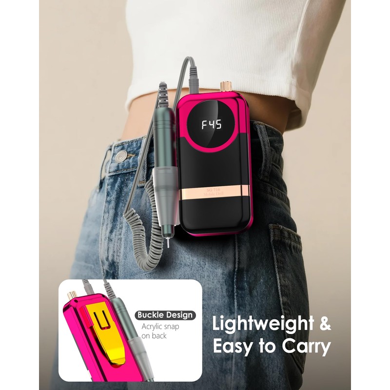 - Marathon Battery Life & Portable Design: Our professional nail drill has a large capacity battery of 3600mAh, which can be used continuously for 10-12 hours after charging for 2-3 hours, making it ideal for busy manicurists, pop-up salons or travel. The portable rechargeable nail drill has a smart LCD screen that displays the speed status, allowing you to stay focused at all times. The lightweight design allows you to hang it on your belt or put it in a bag; this cordless nail drill can easily meet your mobile lifestyle without burdening you.