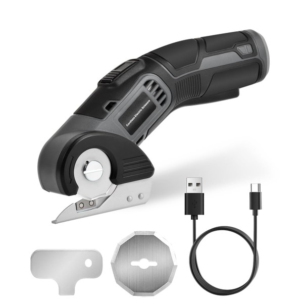 Electric Rotary Cutter 4V, Cardboard Cutter, Cordless Rechargeable- High Efficiency Scissors for Cutting Leather, Cardboard, Carpet, PVC Packaging, Safety Lock Design, With Two Tungsten Steel Blades