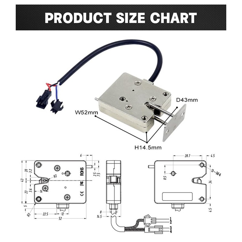 Electric Rotary Latch, Electromagnetic Control Lockers Solenoid Lock, Cabinet Drawer Latch DC 12V, Zinc Alloy Mini Electric Bolt Lock for Small Cabinet Door
