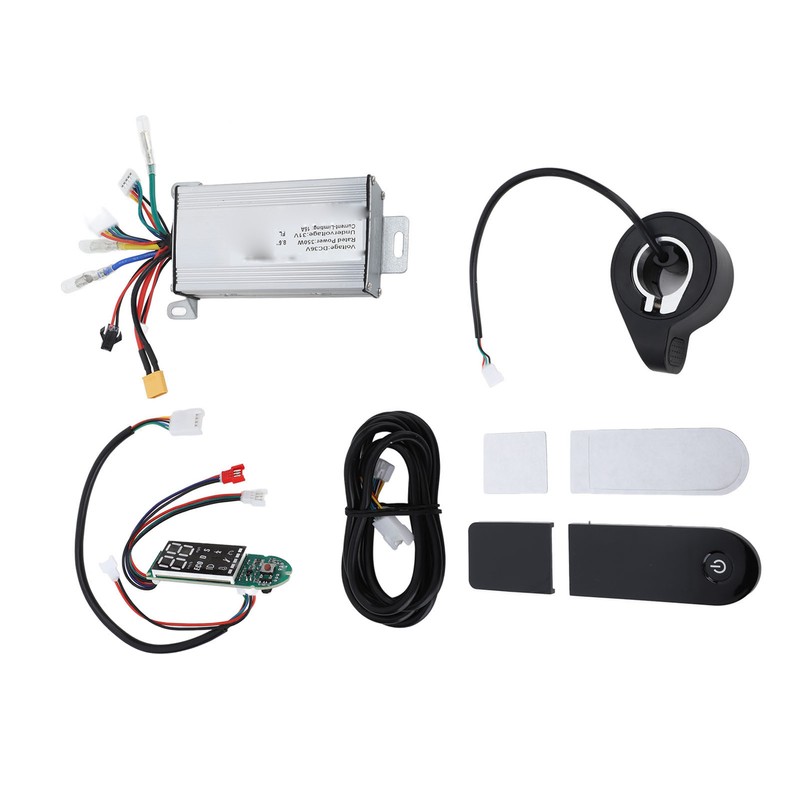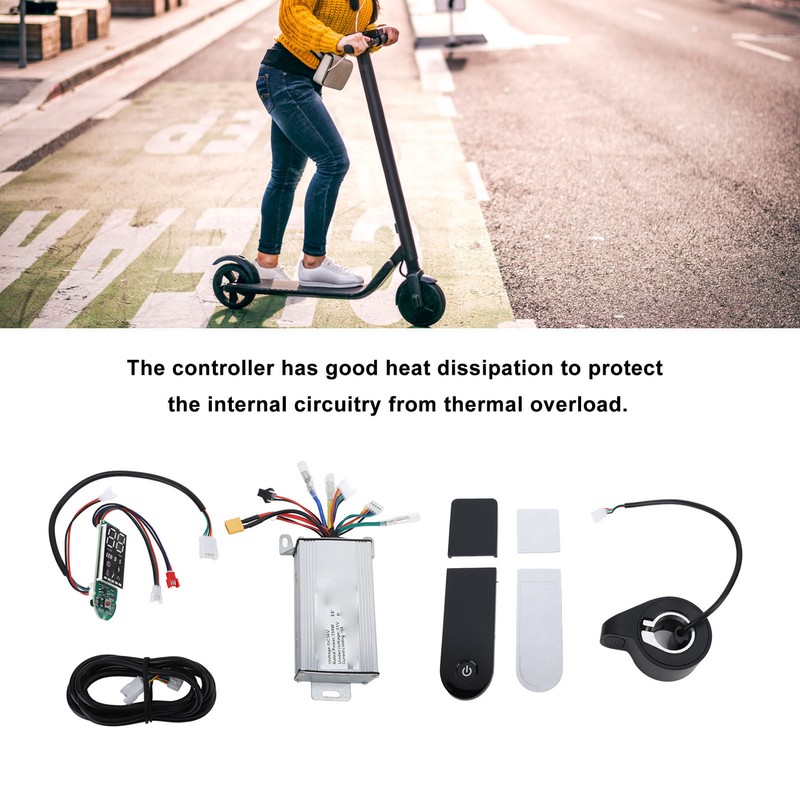 1、GOOD HEAT DISSIPATION: The controller case is made of metal material with grooves to protect the internal circuitry from overheating due to poor heat dissipation. 2、COMPLETE ACCESSORIES AND EASY TO REPLACE: The set includes controller, dashboard and other accessories, easy to replace and install to meet users' needs. 3、STABLE AND RELIABLE PERFORMANCE: The rated voltage of the controller is 36V and the rated power is 350W, which makes the performance stable and reliable. It is equipped with various protection functions such as under voltage protection, over current protection and stall protection, which guarantees the safe operation of the electric scooter. 4、STABLE SPEED CONTROL: The controller set can provide stable speed control with sensitive braking and direction change control. 5、WIDELY APPLICABLE: The controller set is suitable for Xiaomi M365, 1s, pro, pro2 imitation YFS and other electric scooters, with a wide range of applications.