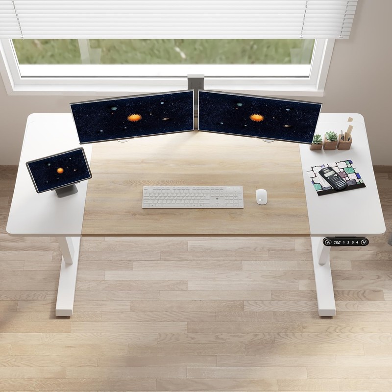 Electric Standing Desk,55 x 24 Inches Height Adjustable Stand Up Table, Ergonomic Sit Stand Desk Workstation with Splice Board, White Frame/White and Oak Top