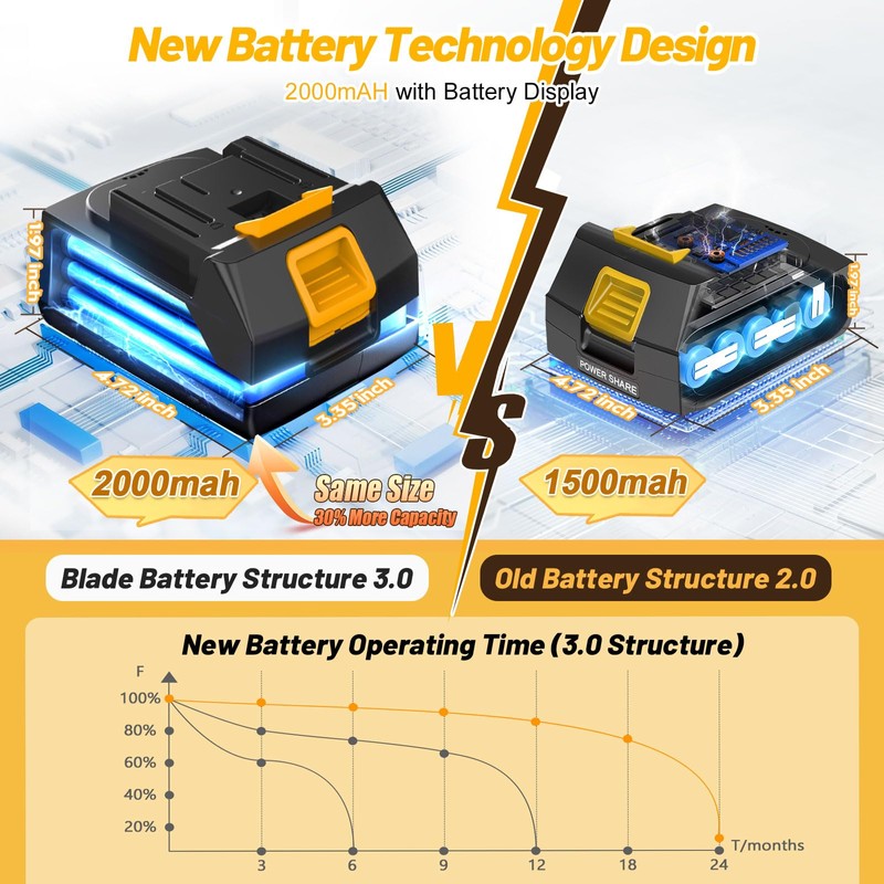 ✅-- 2PCS High Capacity Battery: The cordless weed trimmer with 2*2000mAh high-capacity 21V lithium-ion battery, and battery weed trimmer with higher efficiency and longer run time (2pcs totall 60-80 mins working time).