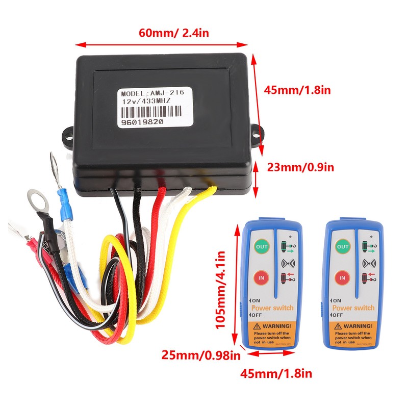 1、Wide Application: The heavy duty electric winch wireless remote control is suitable for Truck ATV SUV with 12‑24V winches. 2、Powerful Function: Features power in and power out function, allows you to keep clear from dangerous rigging. 3、Easy to Operate: The winch remote control system comes with dual handsets, high efficiency, convenient to use. 4、Indicator Light: Indicator light design can show the remote operation status, remote control range is up to about 150ft. 5、High Performance: 12‑24V wireless winch remote control system kit, compatible with 17,000lb winches, easy to wiring.