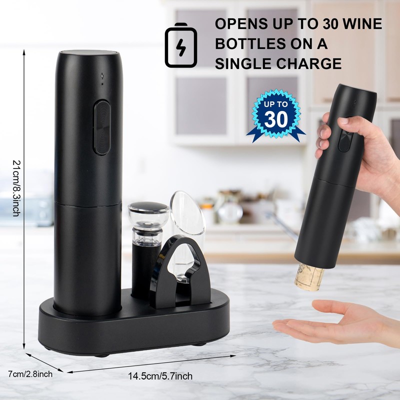 Electric Wine Opener Set with Charging Base, Rechargeable Automatic Corkscrew Bottle Opener with Pour, Preserver Vacuum Stopper, Foil Cutter, USB Charging Cable