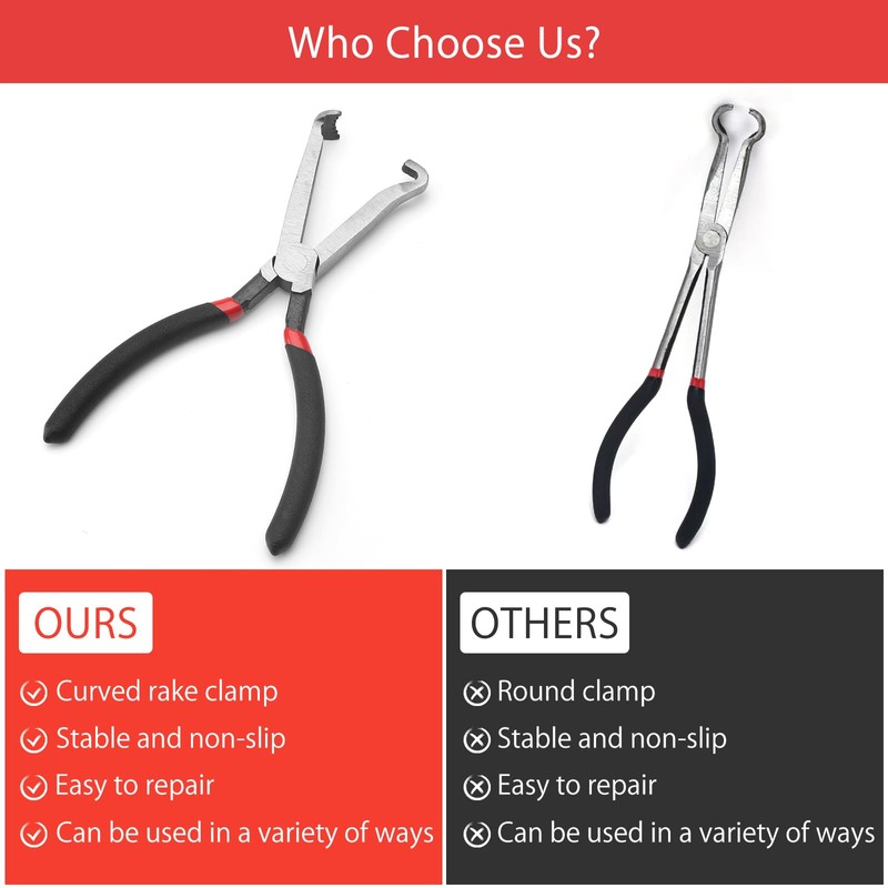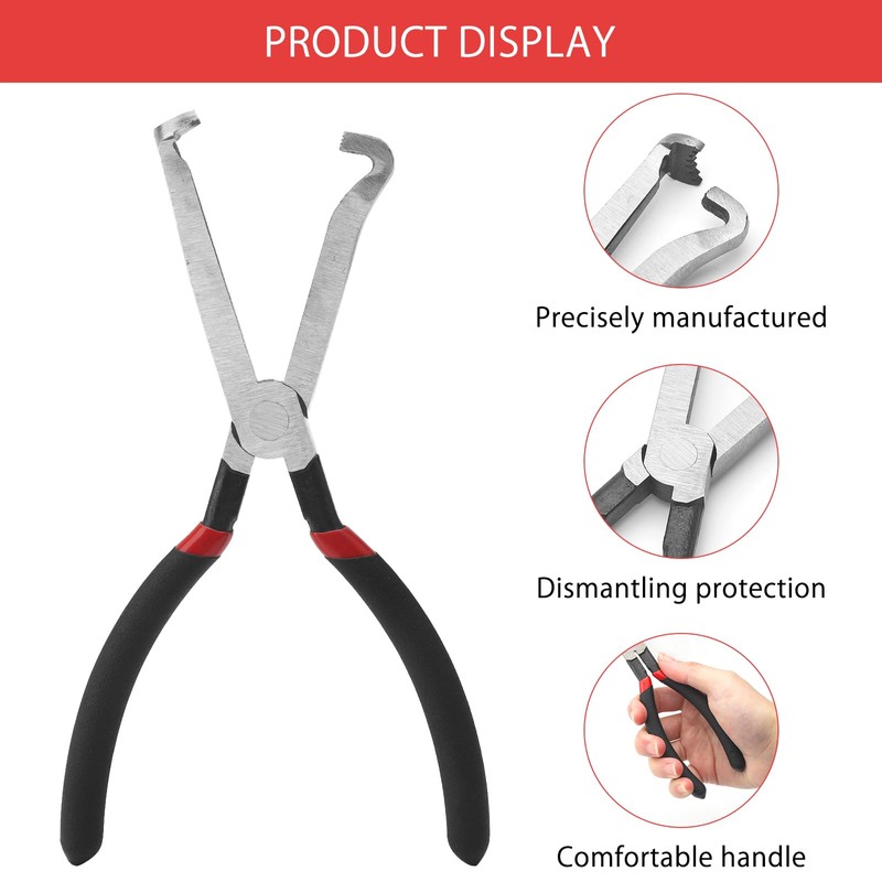 - Unique design: The curved design of the pliers with rake claw holds the connector firmly and can be disconnected quickly. Fuel line pliers can easily reach and disconnect hard-to-reach places such as tight engine compartments, under dashboards or hidden in side panels, making it an indispensable tool for car workers