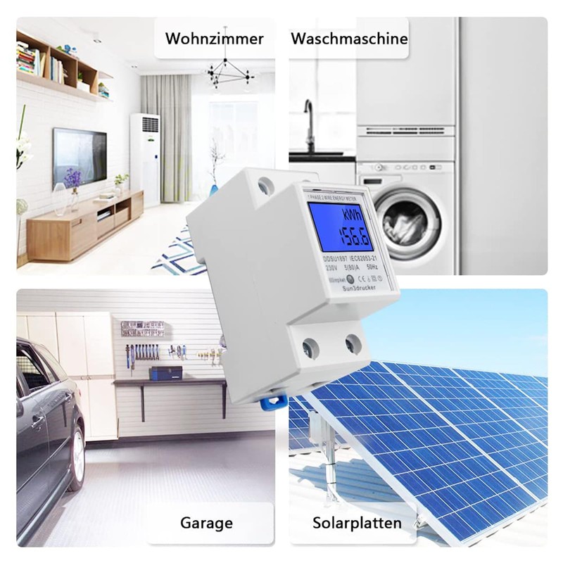 • Electricity meter DIN rail: the counter is designed for quick snap-in mounting on DIN rails. You can also install it in e.g. as a subcounter in meter cabinets, control cabinets, sub-distributions without a meter board