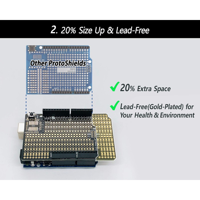ElectroCookie Proto Shield Kit Compatible with Arduino Uno, Stackable DIY Expansion Prototype PCB (3 Pack)