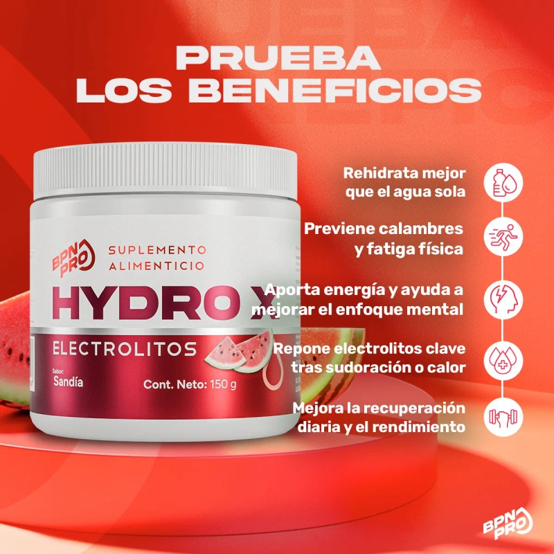 Electrolitos En Polvo Sabor Sandía Watermelon | Magnesio, Potasio, Calcio | Hidratación, Ideal Para Gimnasio, Calor, Ejercicio, Sudoración Y Entrenamiento | Hydrox BPN PRO 30 Porciones