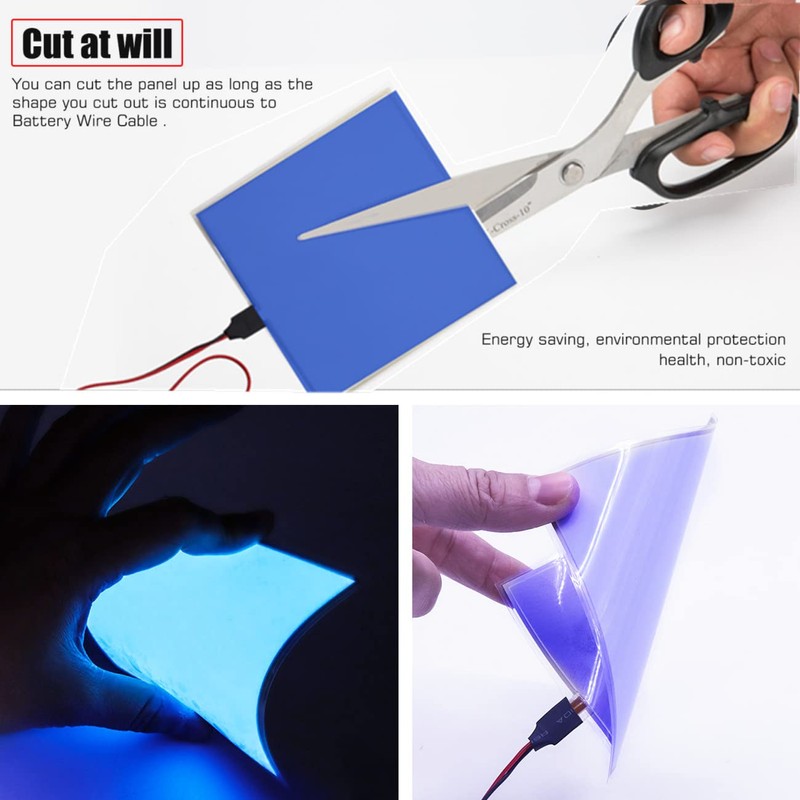 Electroluminescent El Panel Light - 3Modes Normal on/Slow Flash/Fast Strobe, 10cm x 10cm DIY EL Cuttable Backlight Paper Lamp Sheet for Warning Cosplay Party Decoration (Blue)