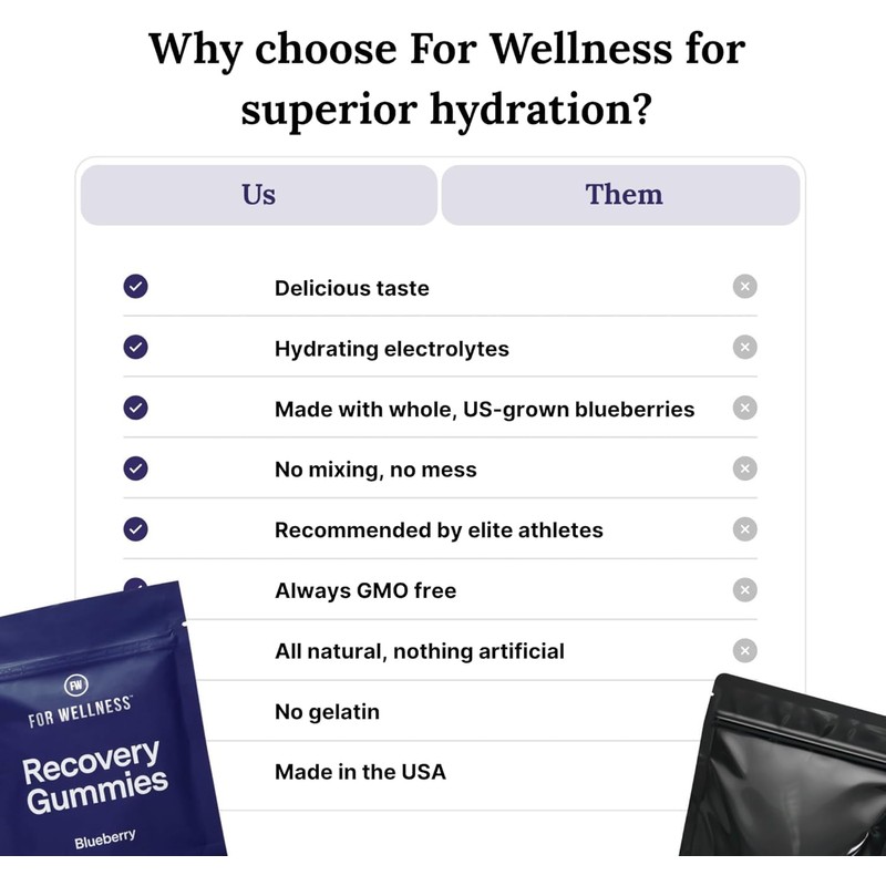 • RAPID ELECTROLYTE REPLENISHMENT: Smarter, faster hydration. Replenish and recharge with For Wellness Recovery Hydration Gummies. Formulated with a superior blend of essential electrolytes—potassium, sodium, and magnesium—these electrolyte chews help keep you hydrated and performing at your peak. Perfect for runs, golf, workouts, or busy days on the go when you need a fast, effective boost.