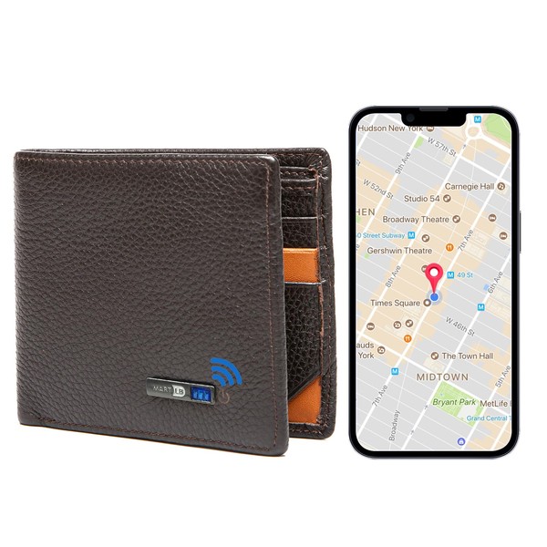 Electronic Finder Anti-Lost Bluetooth Wallet Tracker, Mens Wallet with GPS Position Locator & Finder (Carbon Black) (Coffee)