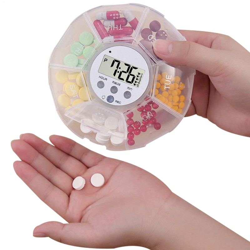 Electronic Pill Dispenser,Pill Storage Case with Timer | Recording Function, 7 Compartments, Organizer Box for Health Products Supplements