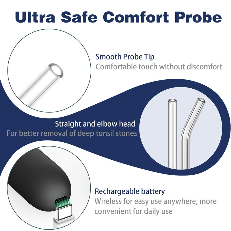 - 【Household Essential】-- Our Electric Tonsil Stone Removal Kit is suitable for use on your own at home, assuring you of professional-grade care, and leaving your mouth feeling remarkably cleaner and healthier. You can focus on your work presentation or first-date conversation without worrying your breath is ruining the experience. Rest assured If our tonsil stone removal kit does not meet your expectations, please feel free to contact us.